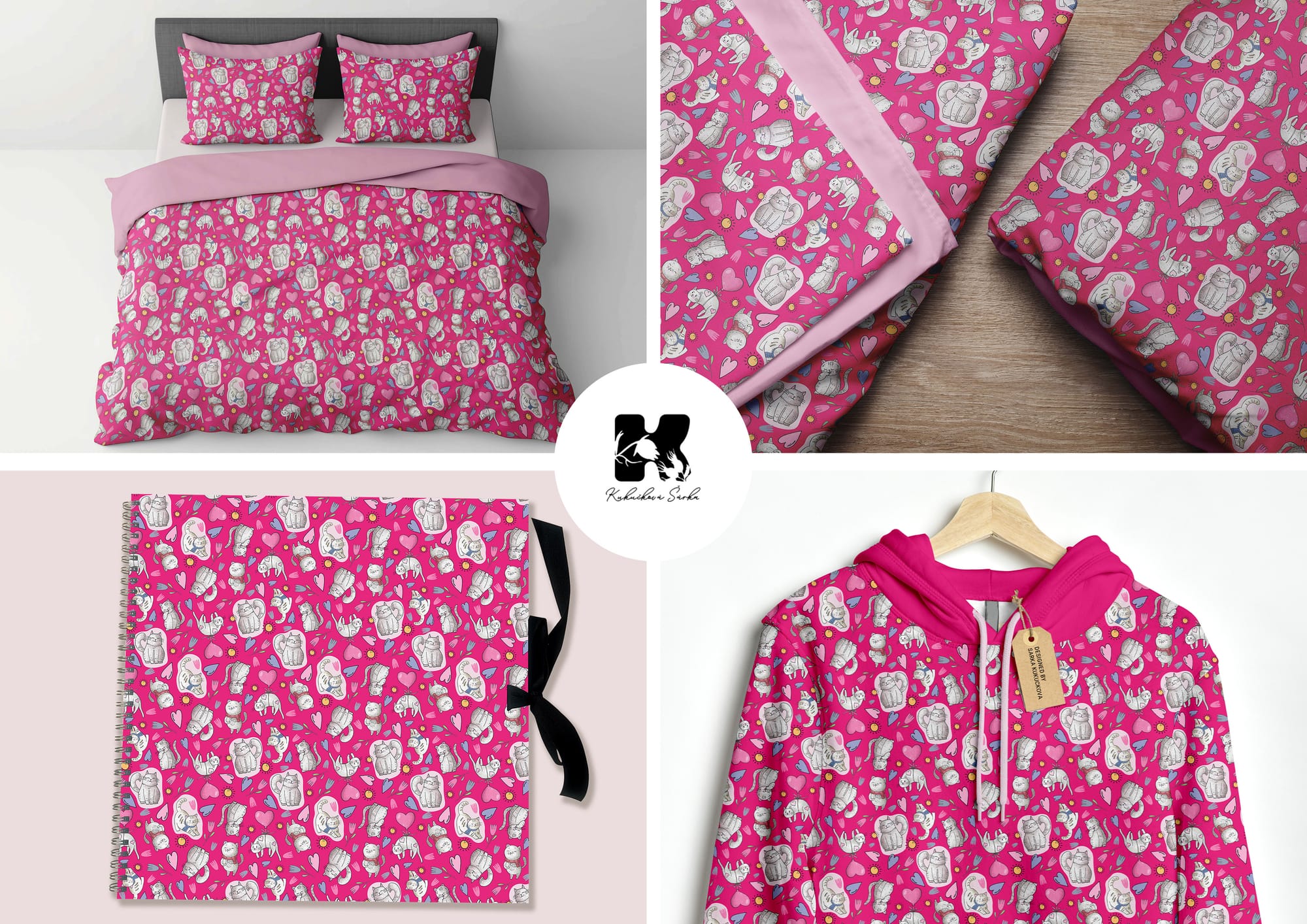 Co na mých stránkách najdete- Autorské bezešvé vzory z vlastních ilustrací vhodné pro textilní design, tiskoviny nebo produktový design (balicí papíry, notesy, obaly).